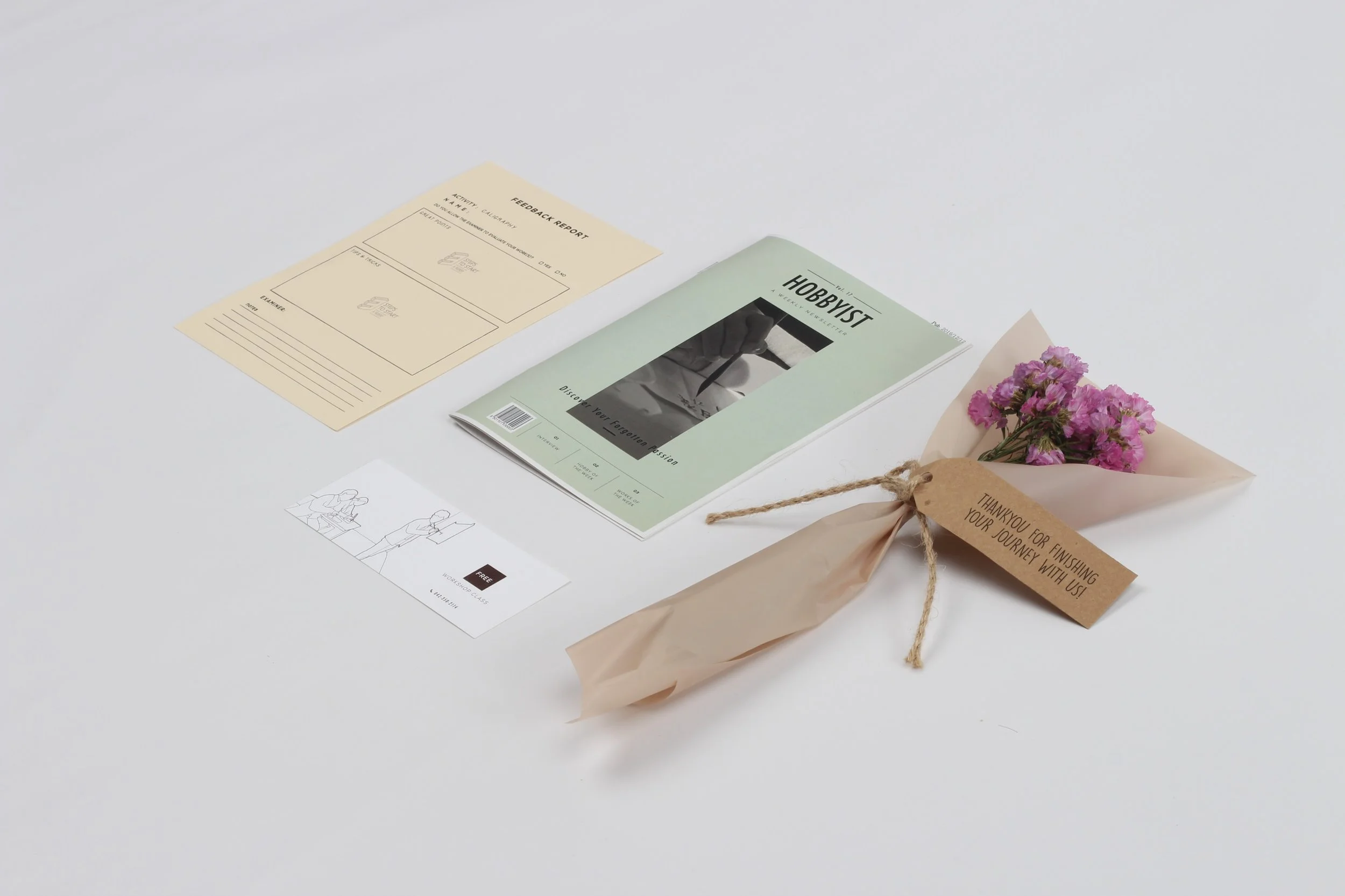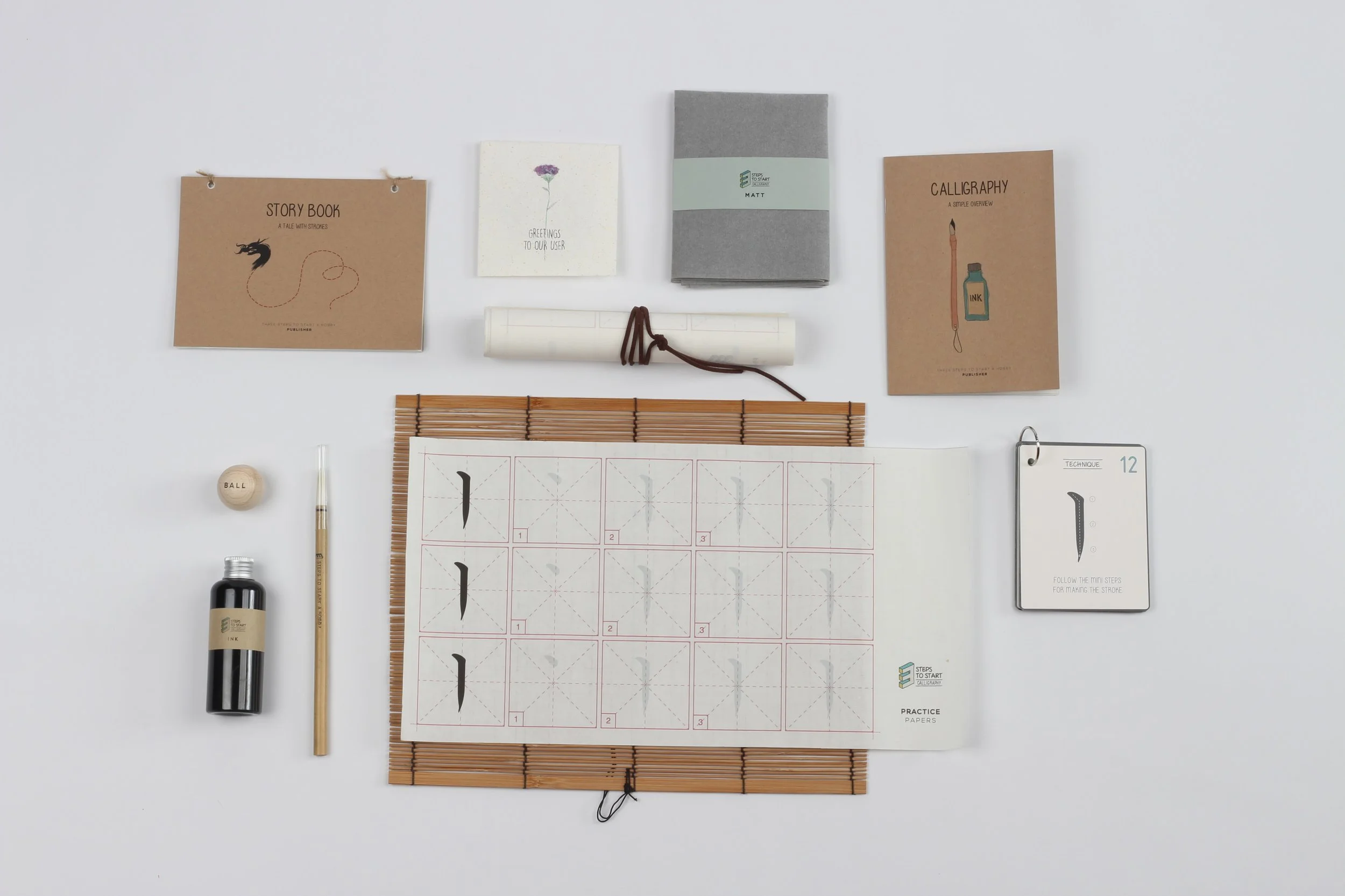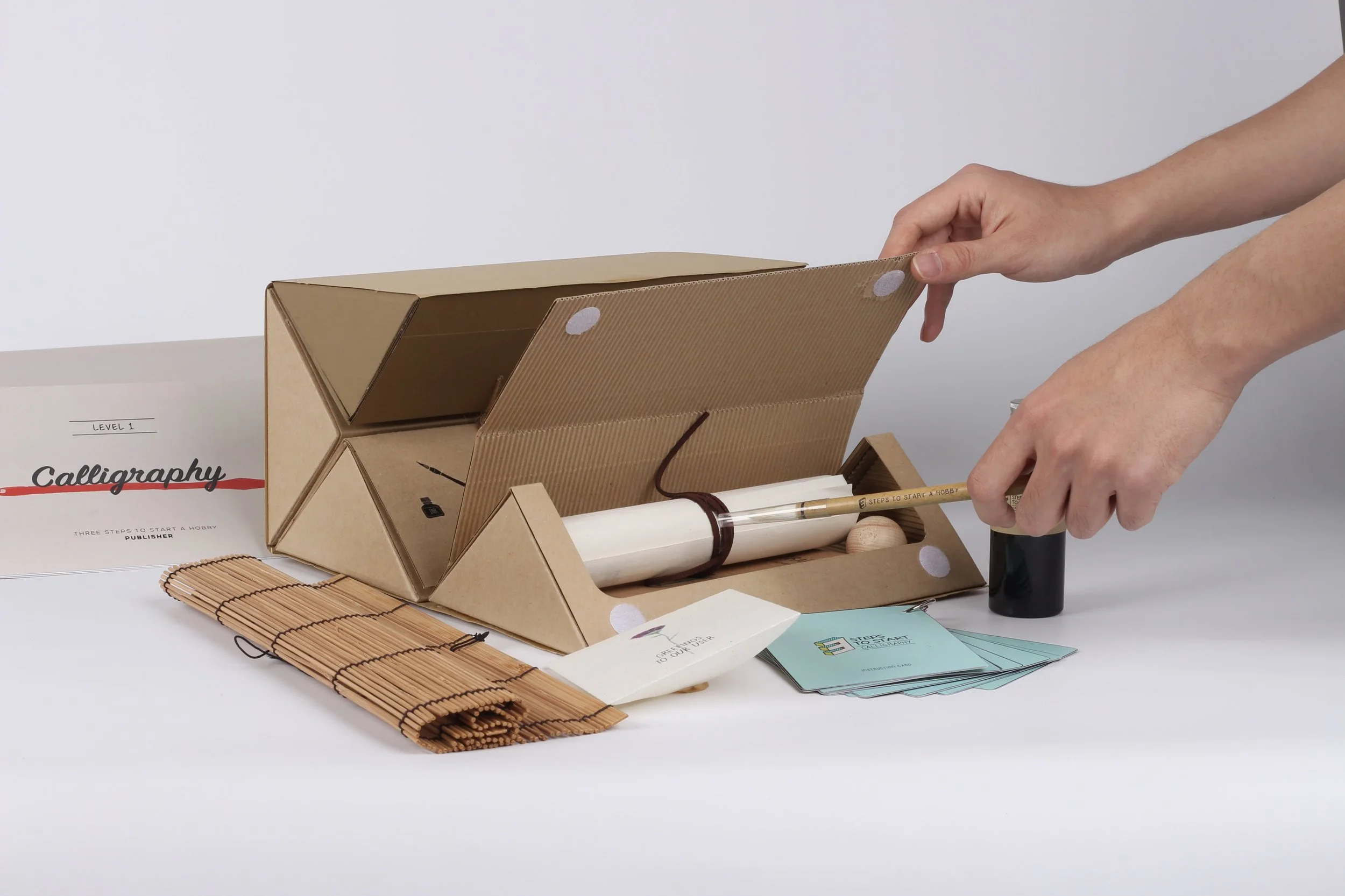 We developed and prototyped a calligraphy learning kit as the first hobby box. The service is '3 steps to hobby' - that it provides hobby learning in 3 stages with step-by-step instructions.