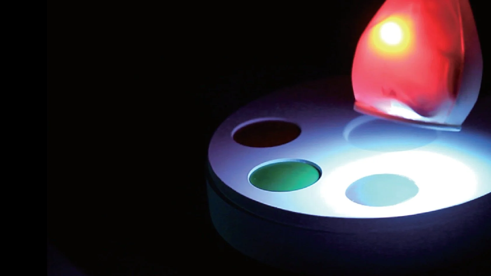 “Color Palette” is an interactive and educational table lamp for children that resembles a brush and a palette. You can mix and change the hue of the light by brushing the color from a palette.